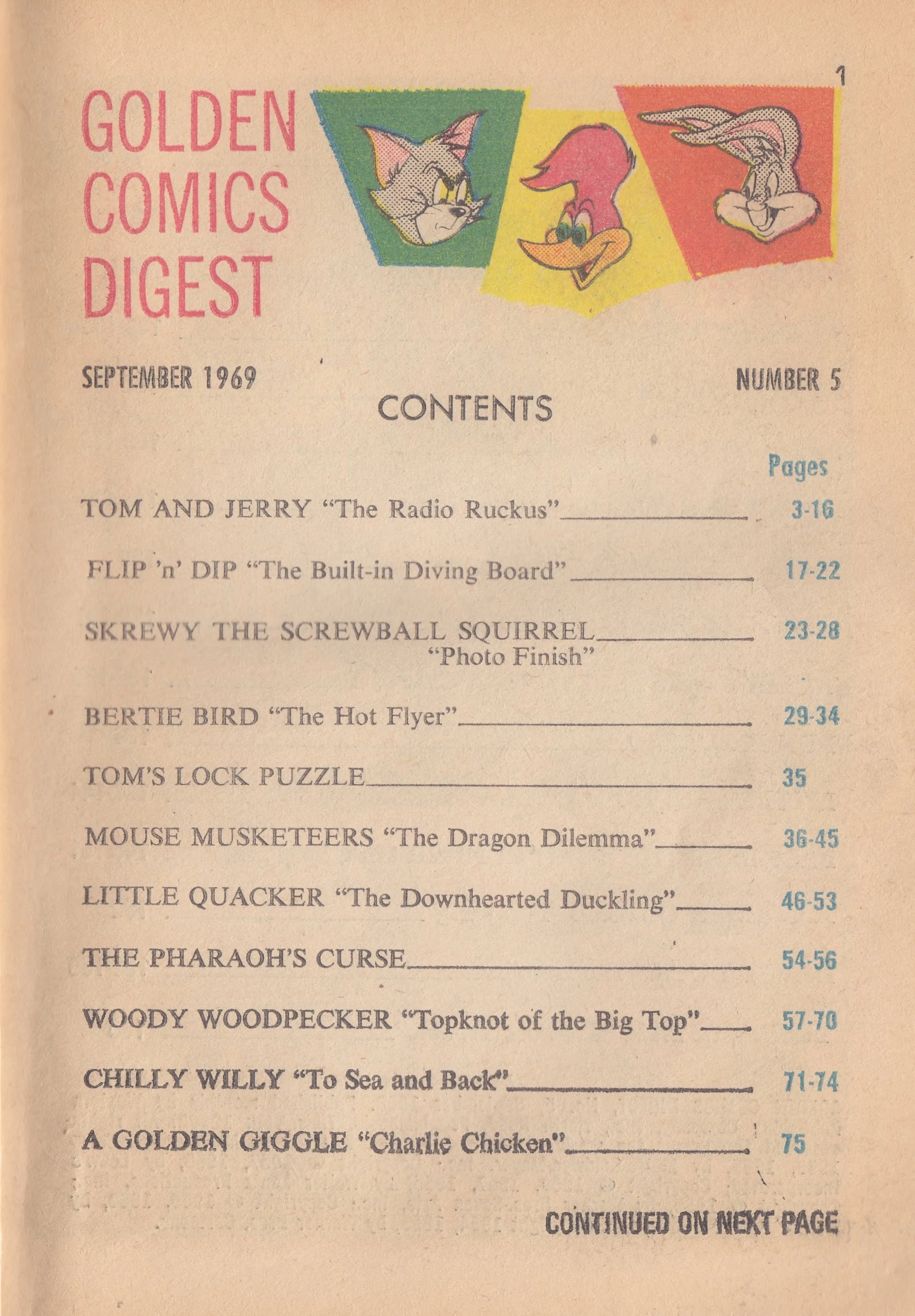 The comics featured characters licensed by Western Publishing. Looney Tunes, MGM Cartoons, Walter Lantz and others.