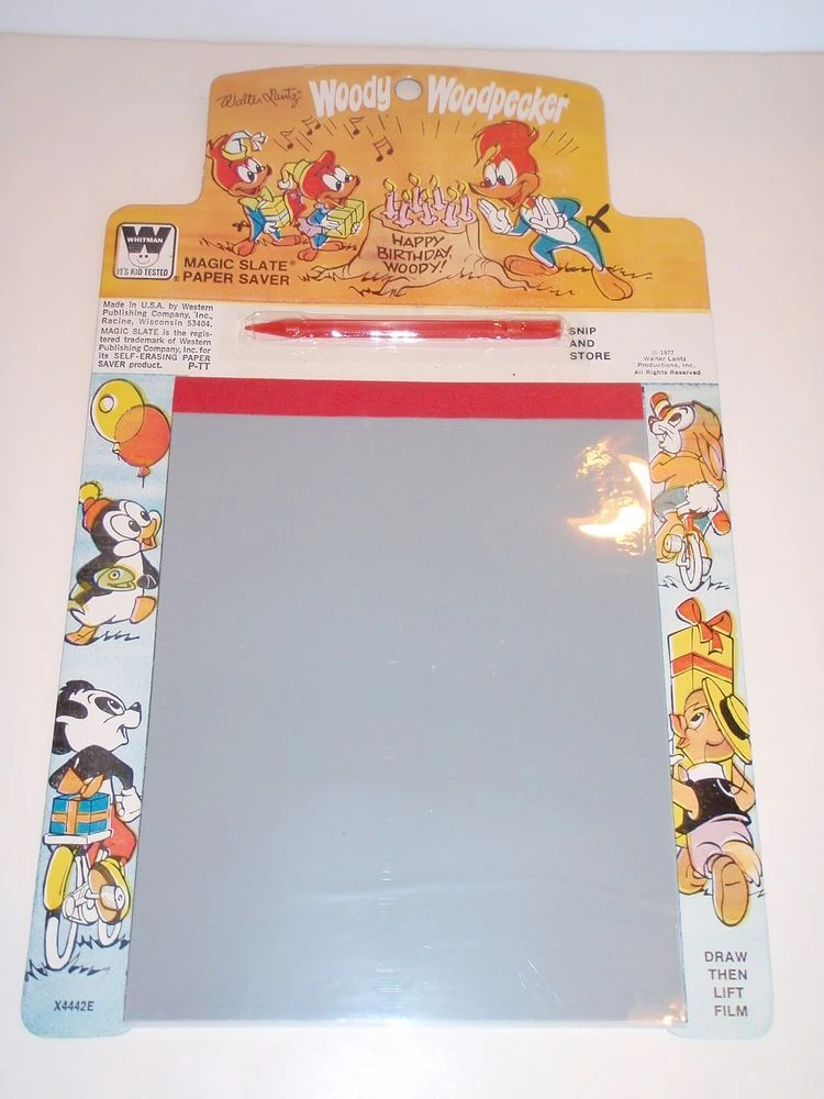 | Whitman Magic Slates Woody Woodpecker - Butterflies 1977 ◉ Woody Woodpecker - Doghouse 1977 ◉ Woody Woodpecker - Happy Birthday Woody 1977 ◉ Woody Woodpecker - Bull Matador 1981 ◉ Woody Woodpecker - Golf 1981 ◉ Woody Woodpecker - Building A Fence 19?? ◉ Woody Woodpecker - Leaky Boat 19?? ◉ Woody Woodpecker - Reading Comics 19?? ◉ Woody Woodpecker - Sports 19?? ◉ Woody Woodpecker - Woody's Ark 19?? | |||||||||||||||||||||||||||||||||||||||||||||||||||||||||||||||||||||||||||||||||||||||||||||||||||