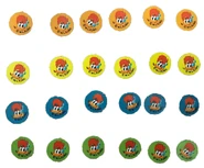 Contents: 24 playing pieces, spinner and gameboard.