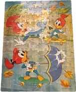 TV Favorites 30 Piece Wooden Puzzle • TV Laughs Sword Fish • Cartoon Carnival Falling Treehouse • Woodpeckers Keep Out Tin Can